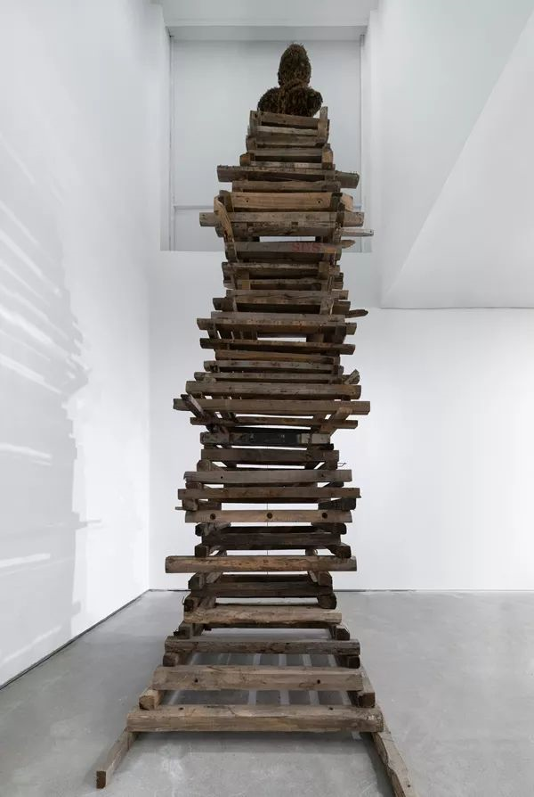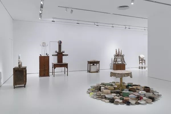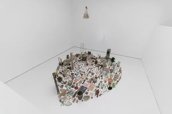 此次展出的装置作品有机延伸了先前“无穷柱”和“渣滓”的概念。展览伊始铺设台阶,观众走到高出,俯视位于下方的作品《乱世佳人》。整个作品由各种旧物铺设成心形,欧阳春如此解释:“站在高处,才能看到心。”