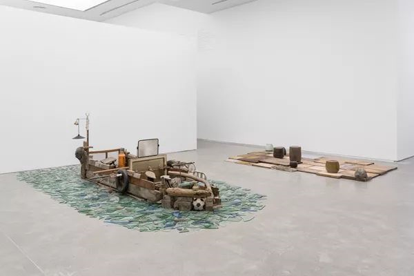 下楼后,来到隐喻“自然”的单元,观者穿过“河流”,目睹“小船”,遇见“大象”,那些“实物”都由艺术家通过废弃物资重新组装。