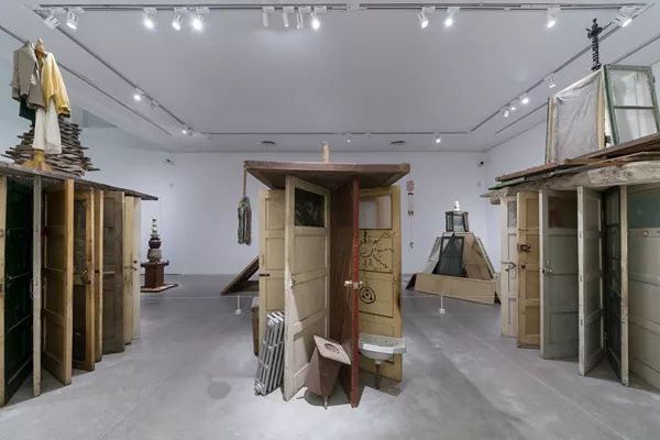 太多了。那些放泡菜和酱油的坛子,捆一起的绒线,院子里的碎玻璃,还有被砍掉的树桩和树枝,这些东西都成了这个展览的一部分。我对我们院子的门感触很深。那儿整体空间很窄,户型也比较小,平时大家就蜗居在一道道门后。每家的门都有自己的故事,有的贴着各种各样的信息,有的把洗脸的毛巾挂在门外,有的门上有油烟渍,有的门上布满了裂缝但也有修补的痕迹。我觉得很感动,这一扇扇门就在我脑中飞速旋转着。我做《天堂入口》和《尘世入口》的想法很简单,就是门在飞速转动时,隐喻人正在通向另一个世界。另外,我很喜欢古代的一些文化,我觉得它也像是佛塔。当然,“旋转门”不仅是一种形式,而是真实地承载着许多故事,所以我感触挺多的。