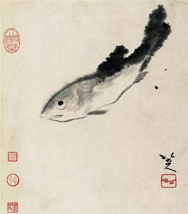 山人艺术的成就,必然是经过多少时间的观察和揣摩,才能由繁到简,却又表现无余。试看他画的嘴、眼、腮、鳍、脊、翅、尾、腹,哪一点不体贴入微,而鱼的种类不同,山人所画无不曲尽其妙。