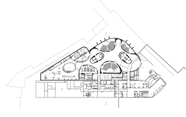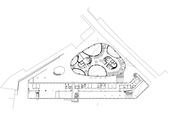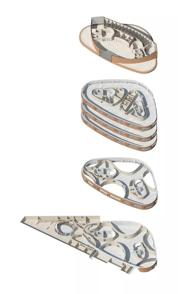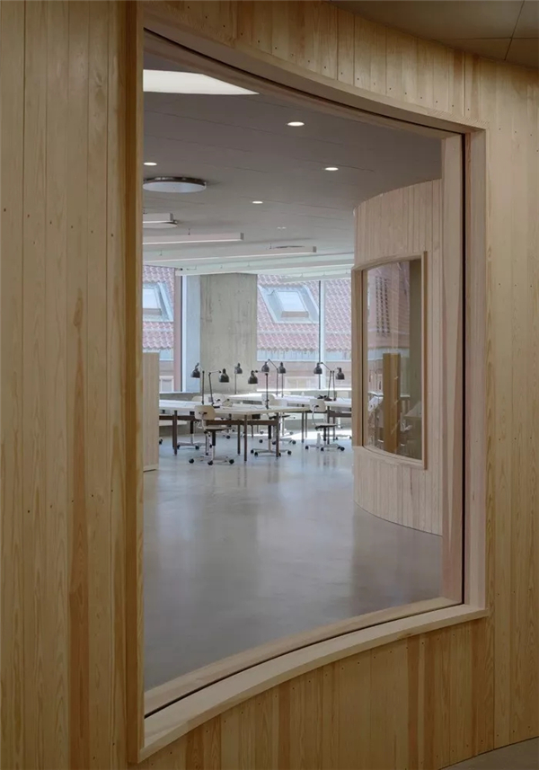 室内设计贴合要求且十分灵活。弧形墙面创造了一个自由流动的连续空间,营造了开放性的氛围。景观和路径穿过结构得以延伸,使其空间感更类似于景观而不是传统学院建筑。