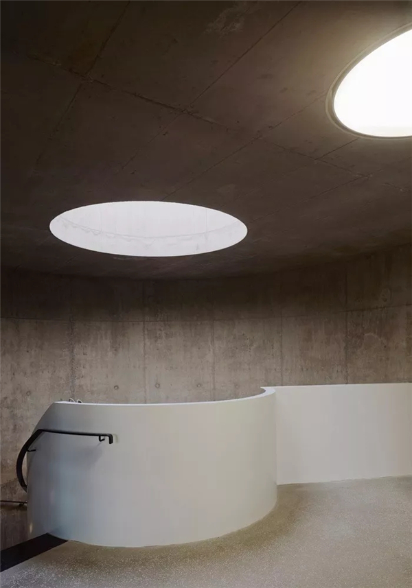 建筑师在入口一层设置了一系列两层通高的工作室和展览区,宽敞的主入口同时也可以作为一个开放的演讲厅。这些空间组成了一条蜿蜒穿过建筑物的宽阔通道。