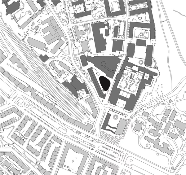 基地位于KTH校园内,周围有着非常鲜活的文化和历史氛围,但其自身也存在一定局限性。新学院坐落于现有庭院内,周围有现成道路,与其毗邻的是20世纪初由 Erik Lallerstedt 设计的红砖建筑。