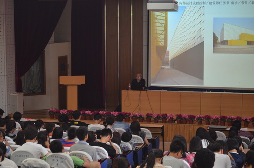 讲座中,胡越大师主要对其作品进行了深入的讲解和分析。胡越大师说,这些挑选出来与同学分享的作品,是他倾注了大量的心血和感情,并且有较为宽松的发挥余地的作品。从设计任务书的要求到设计思想的产生,从设计流程的转变到城市未来发展趋势的分析,胡越大师整场讲座诙谐幽默,用极具吸引力的语言向同学们讲述了关于设计及许多设计的影响因素,如市场现状、行业素养、资金控制等,这些东西对设计类学生未来走向社会都将产生重要的启迪作用。