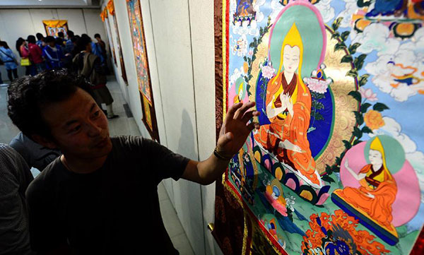 “民间传承让唐卡艺术仅流传于藏族之间,我的理想是让唐卡被世界关注。”在10日的西北民族大学唐卡展开幕式上,美术学院唐卡教师杨旦春说,从前唐卡艺术都是在藏区民间 “师徒相传”,许多技法逐渐遗失。现在“学院派”传承唐卡艺术不但能让这门艺术发扬光大,还能帮助少数民族学生就业,可谓“一箭双雕”。