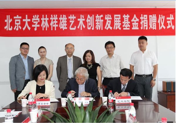 在现场领导、嘉宾和师生的见证下,邓娅、林祥雄先生、王一川共同签署捐赠协议。林祥雄先生捐资人民币300万元在艺术学院设立“艺术创新发展基金”。从人才培养、教师队伍建设和校园文化等多方面给予北京大学艺术学院以资助。