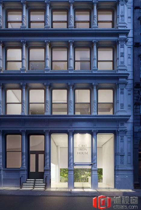 这些公寓建在1882年就建成的铸铁包层建筑,历史比较悠久,这是纽约最受欢迎的居民区之一。坂茂是此次内部重建项目的设计师。开发商 Knightsbridge Properties认为此次设计会打造“特里贝克地区新古典主义的里程碑”。坂茂表示:“我们把Cast Iron House的建筑理念比作瓶子中的一艘船, 原来的铸铁住房表面是瓶子形状, 而重建项目要打造新的现代化室内环境,就是这艘船了。”超过4000个的外部铁板包层已经被移除,送到阿拉巴马的一个铸造车间,进行修复和重造,保留必要的原始设计细节。铸好之后,会重新安装到建筑的正面。顶层公寓采用双层式结构,与现有的建筑融为一体。站在街上看的话,这种设计好似悬在了建筑上空,采用的是钢桁架悬臂梁和玻璃墙。这些玻璃墙围绕顶层公寓修建,连接着室内和露台,有超过130平方米的室外空间。其余的二联式公寓采用“教堂风格”进行设计,有两层高的空间,大小各异,居住面积最小为265平方米。厨房、起居室和卧室将采用涂漆的细木工家具,颜色为哑光白色。设计师还重建了大厅,中心区还有公共庭院。该项目将在2015年竣工。摄影是海耶斯戴维森。