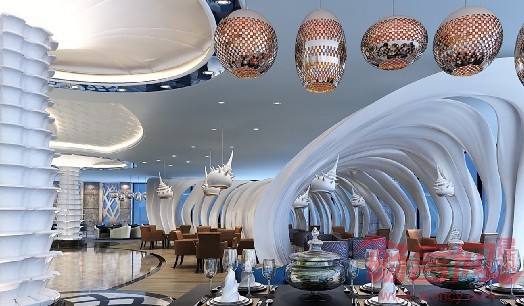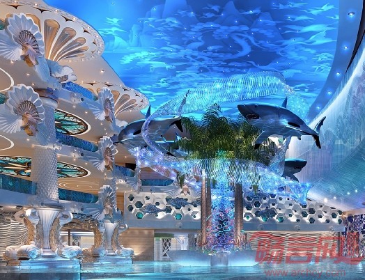 符军:主题酒店创意灵感的获取确实需要依靠市场调查和精准的定位,之前谈到我们在四川那个项目客户希望打造出特色亮点,投资定位就是这个方向。作为设计方我们需要在市场定位基础上完成客户的委托,既然定位为“海洋”主题,我们从建筑外观设计、环境园林的搭配,景观水系的处理,包括高科技的运用,都要完全符合“海洋”的主题。不同的项目的创意立足点是迥异的,比如在沙漠里面做一个森林,项目商业定位很重要。作为设计师我们要从设计元素、文化定位各个方面展开精确的分析、归纳以及确定,从装饰手法、文化符号的运用、未来的整体的视觉形象的预判,我们设计中都要考虑,思考主要问题是文化定位和项目主题如何能够相契合。