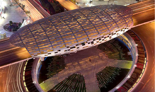 仲松:“那时候的意识就是用中国传统的符号然后把它转换成那种现代的这种钢结构的这种形态和符合周边城市的这种现代感或者是那种技术感,实际上那个时候就在做这种尝试了,后来我们再做的时候就已经不再是简单的专注于一种形态的表现,我们只是用了日晷或我们用了原来的什么样的陡勾或是什么样的绝对不是那样的一种思维方式了,它把社会发展的这种状态更多的这些因素考虑进来,它变成了一种综合性的考虑,那么你就会知道,你在这些标准下你要用到的尺度和这种适度是应该做到什么样的点上,就说你能不能够把这个所有的这些条件能够控制到一个相对适度的一个状态,我现在追求的是一种就是这样一种变化,反倒不是在乎说我们的这个建筑最终形成的是不是有冲击力,是不是可以像纪念碑那样,那个只是一个对于自我虚荣心的一种满足而已。”