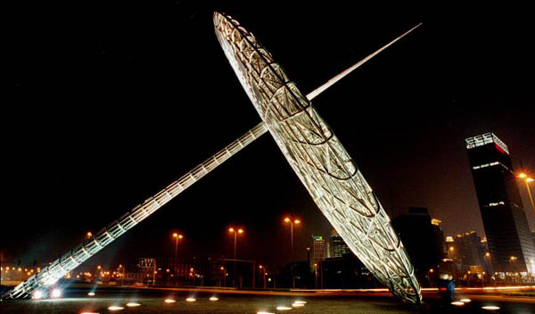 建筑虽然没有国界但必须继承传统的文脉,而传统文化与现在艺术的割裂是艺术创作永恒的难题,仲松在试图提供一种解决途径,传统不只是再现,不是随意安置传统的文化符号,它需要在现代艺术里凤凰涅槃,仲松的日晷采用现代的不锈钢材料,它的变形带着时代的力量。