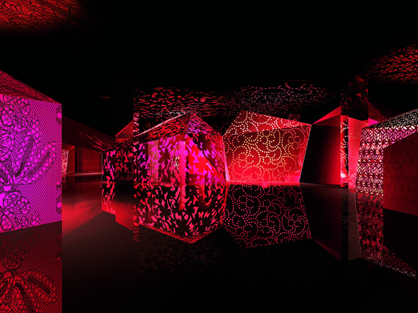 在现代技术的同时,王开方还结合了逻辑学、数学、立体几何学等多门学科来表达万物互联以及天人合一的东方宇宙观念,走入本次来自苍穹的展览展厅,视觉立刻就融入一片耀眼的金色中,本次展览所有的雕塑均选择24K黄金作为材质,而金也构成了此次展览的视觉主题。