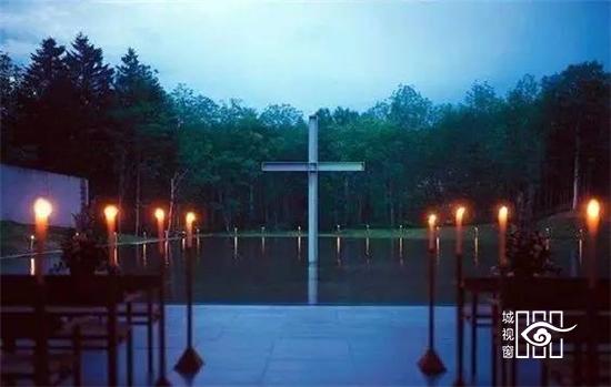 水之教堂的美。 建筑师安藤忠雄先生藉由「从大自然中切割出的空间」重新定义「神圣空间」的概念。透过建筑物与「水、光、绿、风」等自然界要素相衔接,逐渐地净化身心,澄静思绪。安藤忠雄先生将「与自然共生」这个日本人独特的自然信仰,出色地展现在水之教堂的空间中:完全开放的正面将一年四季当中日光的移转、随风飘散的气味、潺潺的水声…等等的大自然景观毫无保留地传递到观者的五感之中。