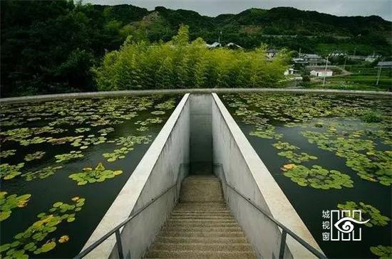 淡路岛梦舞台也是安藤的代表作之一。它的设计理念希望人可以尽可能感受大阪湾的景观,整个项目依山而建尽量发展室外的空间,只在个别空间营造比较宁静的室内环境。安藤在设计之初就将对自然环境的修复放在首位。它想象中的建筑和植物将同时从这片土地上生长出来,与当地政府、周边居民共同制定了植被修复方案,用5年时间种下300万颗树,将裸露的山体恢复为郁郁葱葱的状态。同时为了解决复绿工程灌溉水源的问题,他还设计了庞大的雨水收集及循环利用系统。