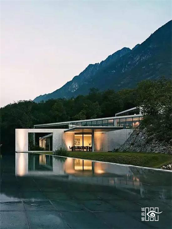 这是由安藤设计的蒙特雷别墅,位于墨西哥蒙特雷西部。该别墅设有一个游泳池,被群山和混凝土墙围绕,可眺望ierraLasMitras山景。建筑为三层高,围绕着中央的双层的图书馆布局。别墅中央时两个三角形的水池。建筑的其他功能区分别布置在两翼,其中一个布置了家庭起居室、饭厅和卧室,而另一个布置了主入口、客房和画廊。