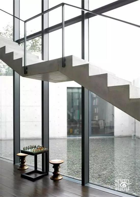 建筑的庭院,为业主提供了一种在日常生活中和自然基础的途径,从而成为了住宅生活的中心。它同时也表现出自然界丰富多彩的各个封面,成为一种重新体验在现代城市中早已失去的风、光、雨、露的装置。光线从天空洒落在光洁的混凝土墙壁上,留下了随时间而变化的光影,成为建筑中一种生动的元素。