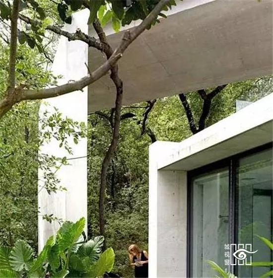 越野的别墅是安藤的代表作之一,位于日本兵库县芦屋市。该建筑由一组平行布置的混凝土矩形体块构成,并避开了基地上现有的树木。建筑物的一半掩埋在国立公园的一片绿色隐隐的斜坡地里,它虽然独立的,却遵循着字让的环境条件。