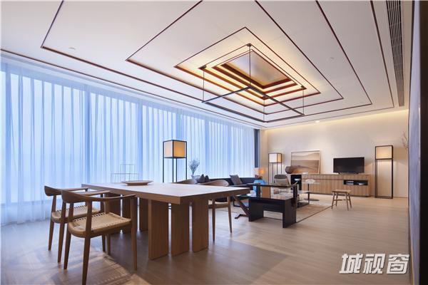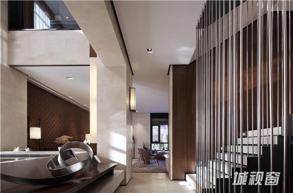 虚静、恬淡,但却又充盈、灵动。紫御公馆项目里,把“空间”的概念定义在建筑的内部。空间里大量采用了石材和木材,局部区间出现了金属材质。在“虚与实”“动与静”的对应关系下,将这些材料加以拆分重构,使之界定在东方传统和当代的视觉形式中。