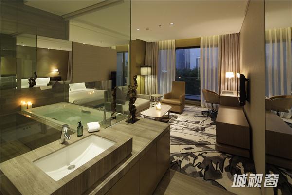米色系的大理石台面和织物设计配以轻盈透明的雪纺纱帘使整个客房好似一个禅意的冥想空间。地面铺陈的艺术地毯,源于艺术大师吴冠中的一幅水墨名画,隽永清雅的线条如宣纸上晕染开来的点点墨迹,让心灵浸淫期间,远离俗世的喧嚣,淡泊而宁静。