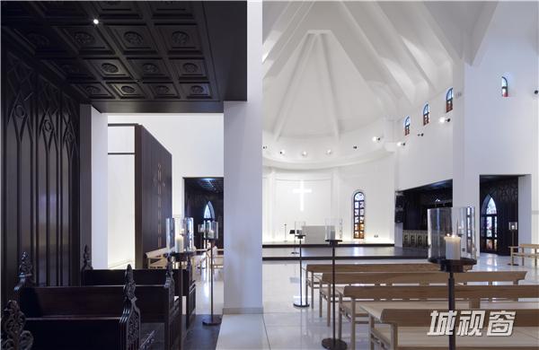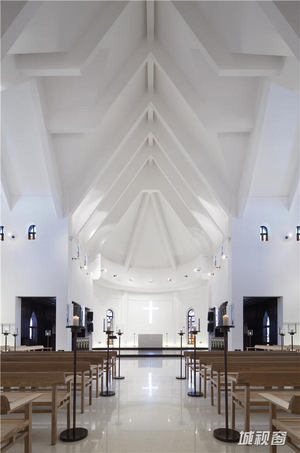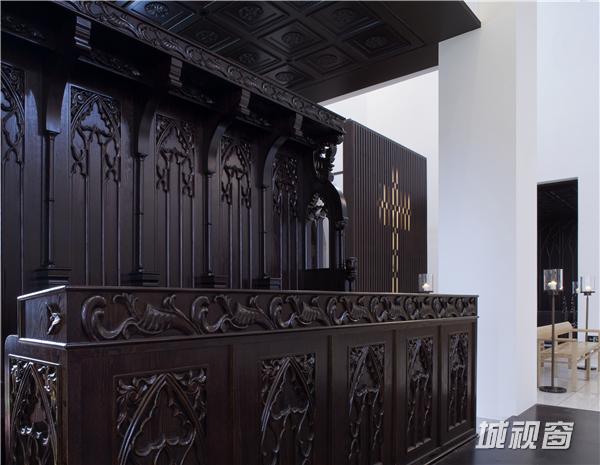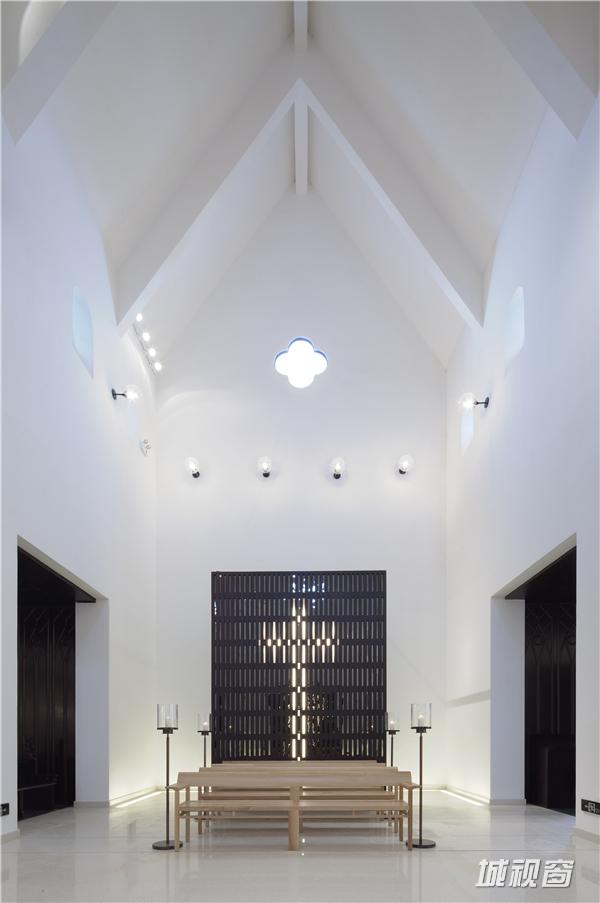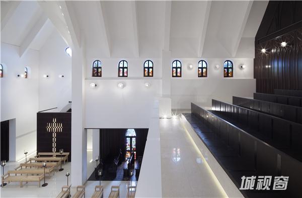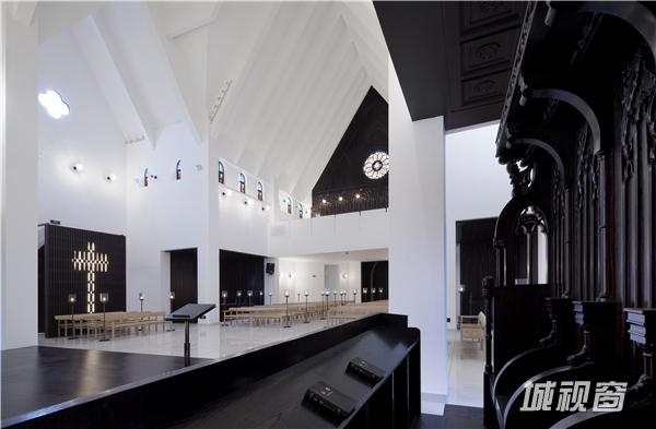 方案在空间的处理上保持了建筑的原生形态,将原建筑结构中的梁所具有的结构美、力量美以及秩序美在空间中表现,与传统教堂空间的构成有着隐蔽而内在的联系。