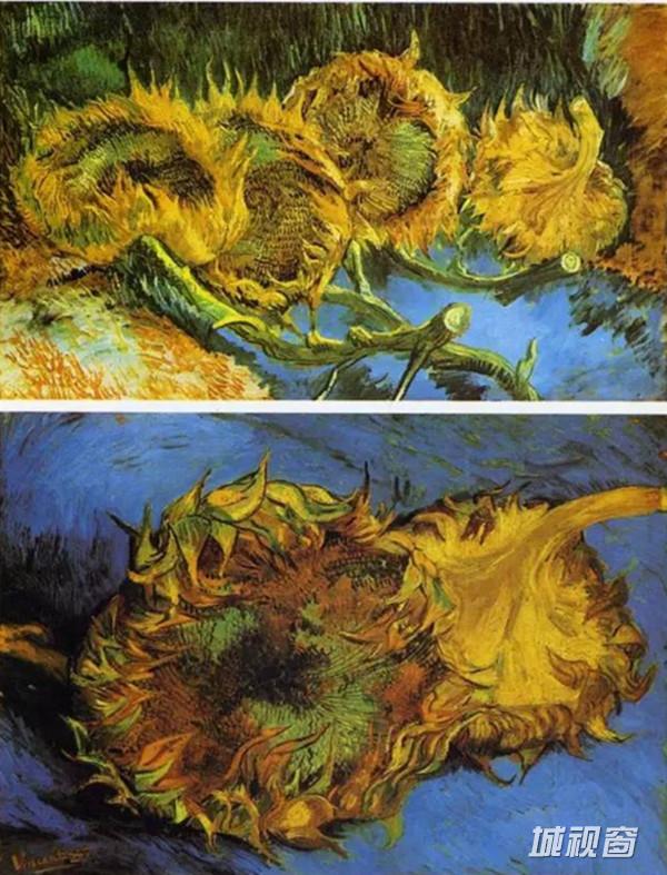 梵高第一次画向日葵,因为他想要为他的调色板来一次“新实验”,这个时候,他还不知道“向日葵”在未来将成为他的个人象征,而且是作为世界上最伟大的艺术家之一的个人象征。这两幅早期作品,他赋予了向日葵一种热烈的黄色,并用了普蓝作背景——这并没有给后来的临摹者带来任何不搭调的感受。