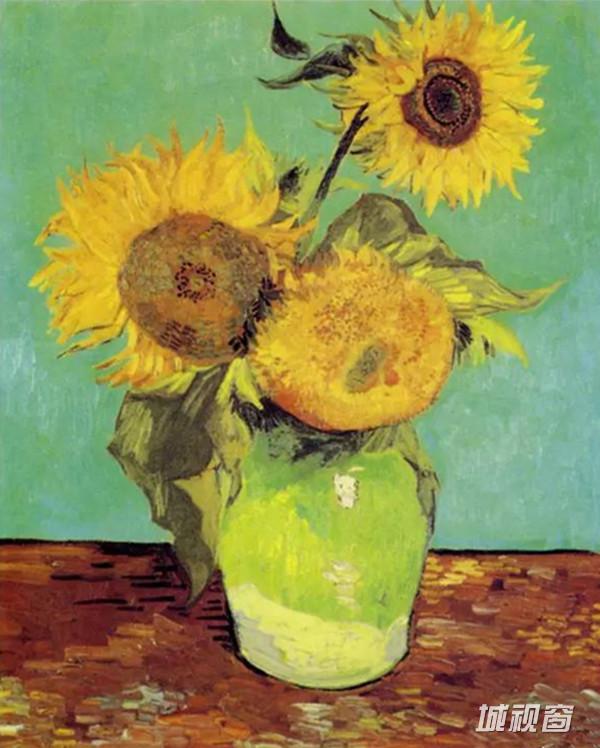 作为梵高个人标签的向日葵是后来在阿尔画的,这时候他已经有了属于自己的色彩语言。有一段时间他几乎每天都出门去找向日葵来画,那时,他正在等着高更的到来。为了建设他梦想中的“南方艺术之家”,他觉得自己应该为第一个同道者(兼任老师)提供好的生活环境,所以他计划在画室的12块壁板上画上他的向日葵。