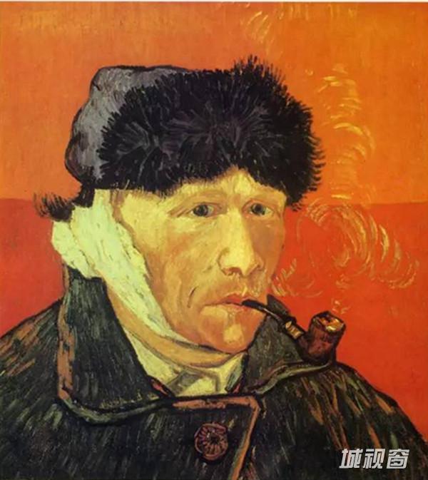 《用绷带包扎耳朵和叼烟斗的自画像》 1889年1月 阿尔