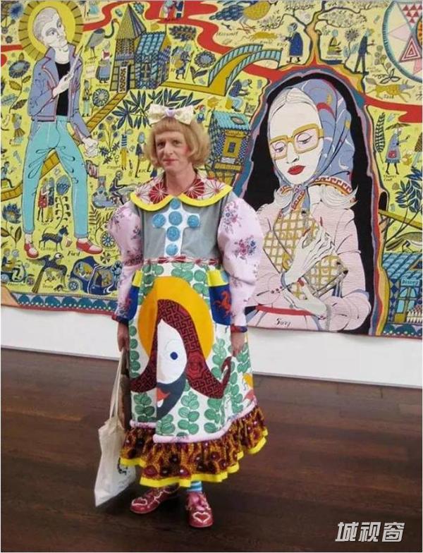 是的,他就是Grayson Perry,当代最有名的异装癖陶瓷艺术家,1960年生于切姆斯福德,他的童年生活十分不幸福,因为复杂的家庭关系和继父的暴力倾向,他的童年时光大都是在自己的卧室里孤单地度过。