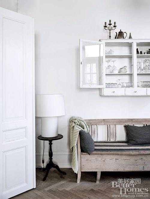"厨房里的长椅为陪伴主妇烹饪的孩子 和朋友们创造了一个很好的休息区。 来自AIAYU的靠垫和羊毛方毯弥补了 硬木材质在柔软度上的欠缺。"