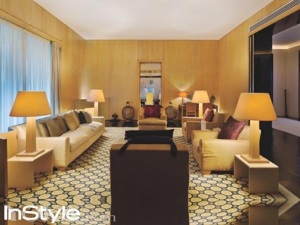 简约的长毛绒沙发旁边有一张木桌,上面摆放着一盏日本灯笼还有巴厘舞者的雕塑,沙发下面用的是乌木地板。“这个房间的任何一个地方,对于我而言,都如同圣殿一般。” Armani说。起居室里凸显出了灯光带给他的困扰。“我认为台灯是Armina Casa最重要的元素。”灯光照耀着他的一张家庭照,弟弟Sergio,妹妹Rosanna,以及他深爱的母亲。