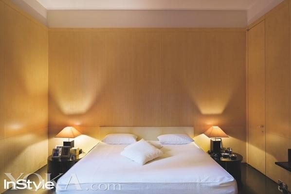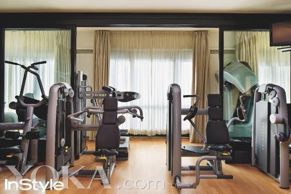 主人的卧室是整栋房子里最简洁的地方。“我讨厌装模作样的卧室,我甚至讨厌睡觉。躺着不动这样的感觉太过明确单一了。所以我不希望看到任何引诱我躺在床上的东西。我要起来,然后出门!”更衣室里镶满镜子的门所映射出来的一切,向我们透露出衣橱里的颜色尽是白色、黑色、灰色或者深蓝色。“这些是我的制服。你永远也不会看到我穿红色或者橙色。” 我们的设计师坚持每天健身。“这就像刷牙洗脸一样,是我每天所例行的公事之一”
