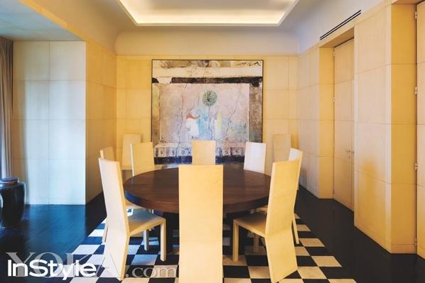 黑白格子使这套很少使用的起居室配套家具突显出来。“当我在家里宴请朋友的时候,我不喜欢任何事物显得太正式。我们在整间房间里转悠,无论哪里都是最舒适的。”