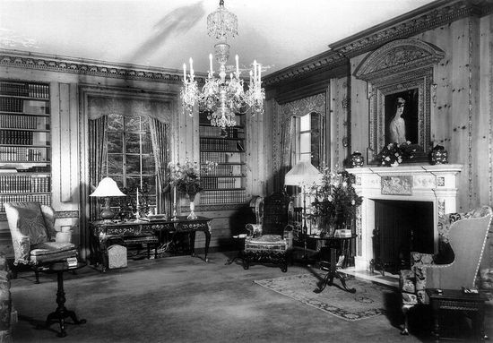 图书馆,克拉克在加利福尼亚的夏季住宅。这位隐居的女富婆自50年代后,就再也没有来过。但仍有服务人员守候在这里,使住宅保持在“一流的状态”。享年104岁的胡姬·克拉克在2011年去世,在去世前的20年时间里,她生活在一个简单的医院病房里。而她的豪宅遍布了加利福尼亚州、康涅狄格州、纽约州。