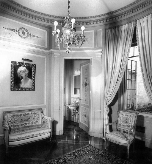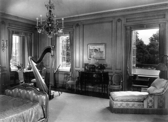 安娜·克拉克的卧室,胡姬的母亲。床头摆放着一座法国坚琴。两扇窗户之间的墙上挂着一张萨拉特的画,下面是胡姬父亲和姐姐的照片。