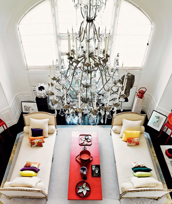 如今在他装饰一新的公寓中,这种独特的中西合璧也随处可见,缤纷浪漫间处处体现着一种东方禅味。起居室里,Kenzo选用了经典的法式卧榻,却又将一件日式矮桌台置于其间。“如此呈现出的水晶与漆器的交相辉映,碰撞成一种别样的民族风情。这里的物品之间都被赋予了某种联系,既有我家乡日本的复古装饰,也有19世纪法国人用来日间休憩的长软榻,还有一些现代的小物件,比如我给Tai Ping设计的地毯或是为巴卡拉水晶提供创意而制成的华美吊灯。” 英雄不问出处,这些来自不同文化背景的东西,因其色彩、形状和质地的联系,也能共处一室,散发出优雅的韵味。