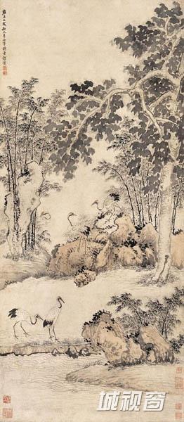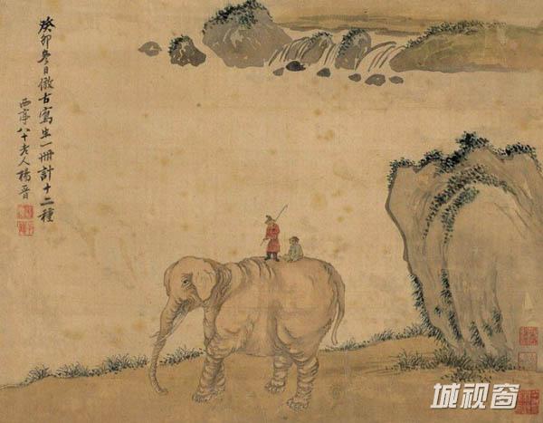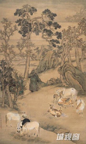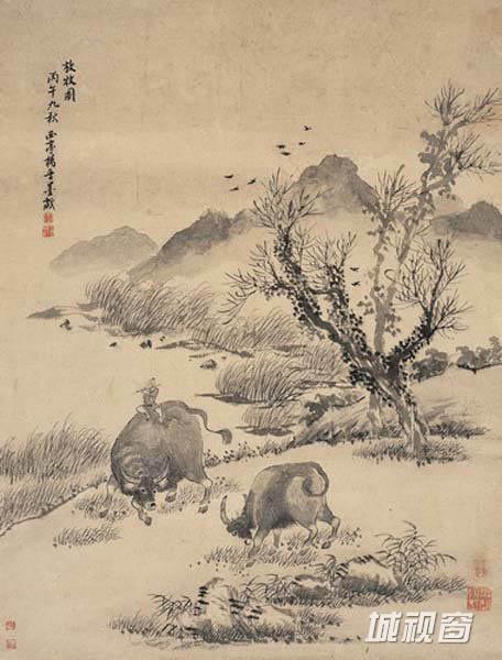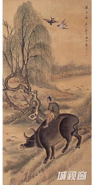 杨晋 (1644-1728)字子和,一字子鹤,号西亭,自号谷林樵客、鹤道人,又署野鹤,江苏常熟人。山水为王翚入室弟子,尝与绘圣祖南巡图颇精。晚年每多率笔,未免苍而不润,神气便少。然农村景物则颇工,尤长画牛,多写意,夕阳芳草,郊牧之风宛然在目,兼及人物写真,花鸟草虫。每侍翚出游,翚作图凡有人物、舆轿、驼、马、牛、羊等皆命补之。又尝摹内府所藏名迹,作副本进御。卒年八十五。