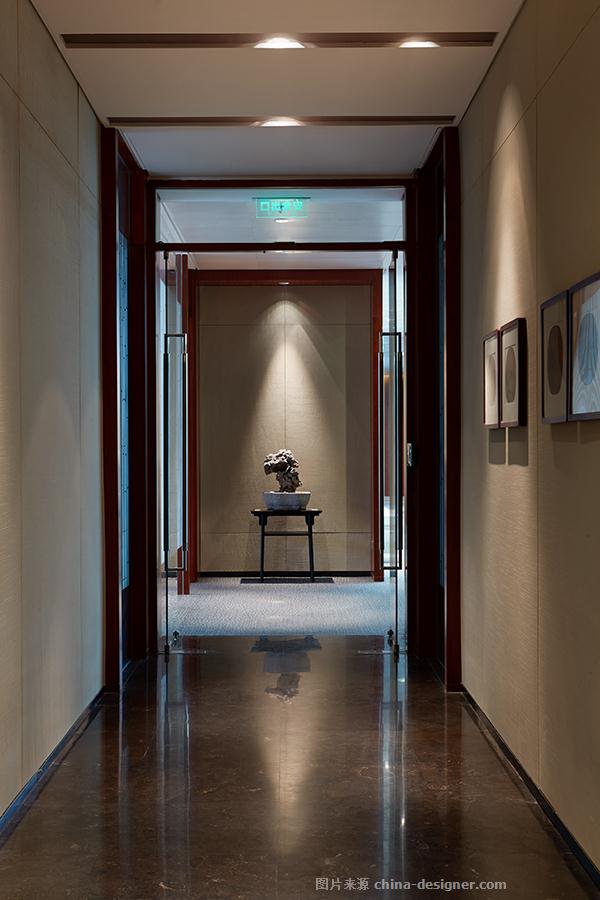 本项目在空间布局上的设计着重考虑空间序列的安排,从大气、内敛的接待空间,通过会议会客空间的转乘进入主要的办公空间,在开敞办公空间中利用屏风、玻璃隔间、半包围半通透的功能空间形成中轴线上的空间序列,结构柱包圆后也形成了廊柱的空间序列关系,整个空间中有对景、借景、框景等空间处理手法,配以艺术品陈设、绿植花艺,仿佛是中国传统治园与现代空间的对话,在立体空间的任意法线中均有轴线可循,均有精心的设计安排。