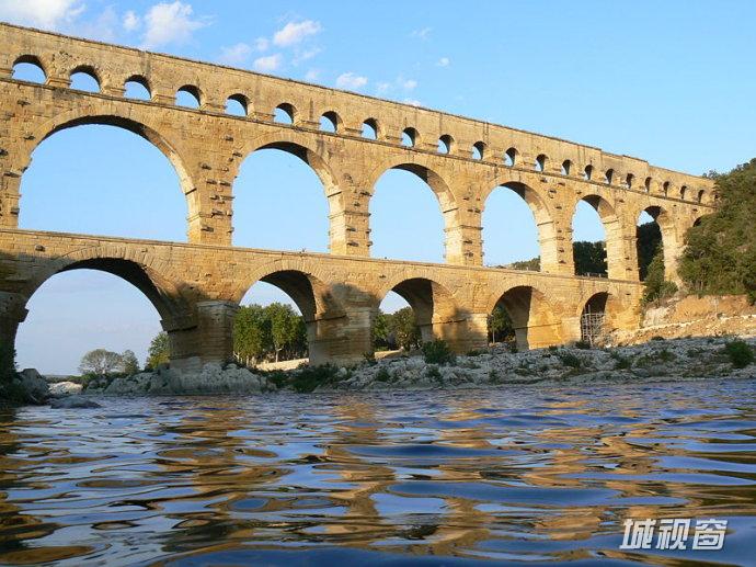 公元前一世纪,为了保证尼姆居民能够长期享用洁净、清澈的生活用水,罗马人选择了远离市区21公里处的一处优质山泉。但是从泉眼到尼姆城二地之间,地形结构复杂,充满了高山和峡谷。更为复杂的是,二地之间的落差仅仅只有17米,这对当时的施工设备和技术而言,极为困难。为了保持有足够的落差引导水流,聪明的罗马人逢山凿道,遇水搭桥,硬是在丛山与深谷之间修筑了一条长达50公里的引水渠。保证了每天能够向尼姆城中提供20000立方米的纯净水源。