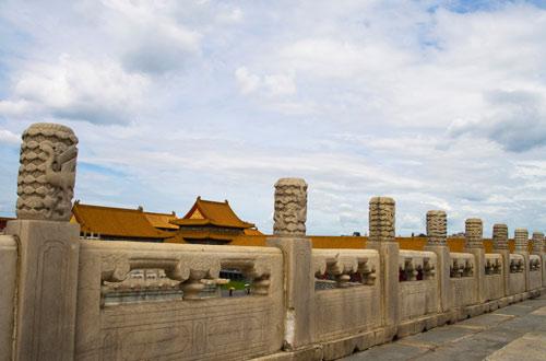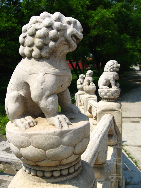 其中武英殿东断虹桥西侧石栏杆的望柱头上,雕刻有神态生动逼真的雌雄、大小狮子,成为宫中望柱头雕刻的佳品。