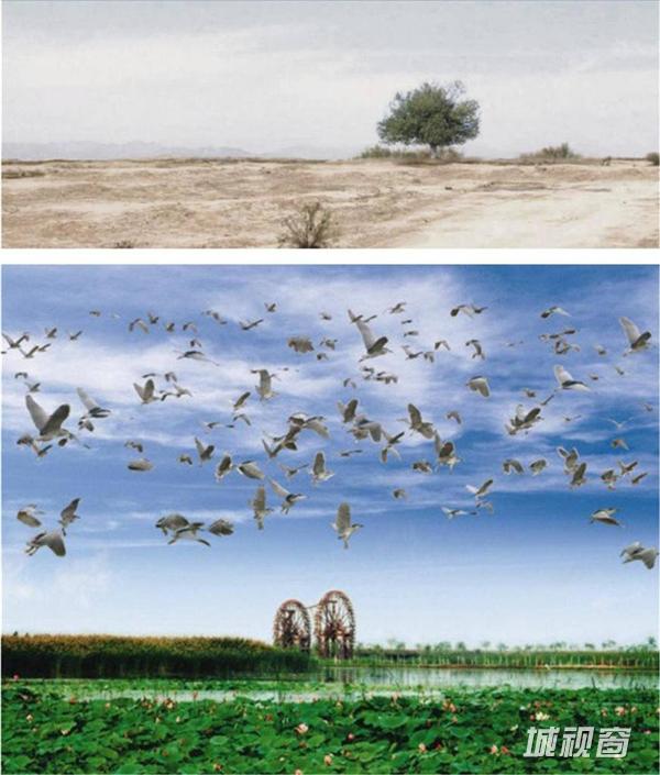 这个弄完我马上又去弄沙漠,你想想这个沙漠怎么会变成这样一个地方,你想不到吧这块地会变成这样?西部地区第一次等到中国来,不是西湖上这个断桥旁边,说是接天,地都没接到呢,我们接天了呢。你想想,一个知识分子也好,一个农民工也好,一个设计师也好,让他把主观能动性彻底爆发出来就具有这么强大的力量,你知道这块地吗?沙化地,就学名叫沙化地,不叫沙漠,就银川边上,你们可以点击一下,鸣翠湖国家湿地公园,国家级的湿地公园,雕塑、建筑都我一个人做的,一个人设计的,都我自己押运、安装这样弄了六年,1万3千亩,要有宁夏的风格的,你像这种你知道是沙漠吗?不知道,不可能的,后代人是不知道的,我必须把这些书写留在世界上,不然他不知道,因为大部分就是这样。光看中国很要命的,你们可能不知道,所有的海滩全部盐碱地,全部荒凉。
