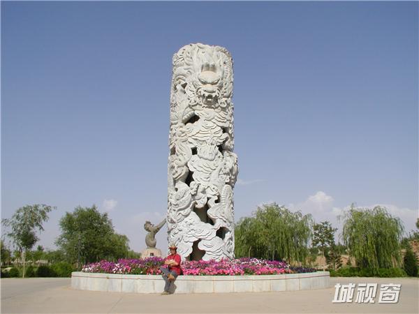 黄河原来在上面后来退到这儿,再退到这里,最后看到一点点水的黄河,这一点点的黄河其实已经变成了红河,水已成了红色的。我干了两三年,当时这里第一次把马尼拉草种活的,在西部来说已经很了不起了。我做的规划设计文本当时在国内都没见过的,更不要说西部,这些文本从业态到生态甚至文本的装帧格式都令西部人吃惊。所以得到了政府的很大程度支持,只是当地的经济和规划跟不上,我的很多策划没办法完成,乙方总是很无奈的,我已经算是很了不起了。飞机来来去去几十趟,员工都受不了,像这座世上最大的花岗石龙柱放在这里镇黄河的,都是我自己设计,带着民工制作、运输、安装,如今这里说说一句话,当时干干要命的,每个环节都用心和血去做的,因为黄河的修复是中华民族历史以来最大的工程,我必须在这一段上在学科中有所体现。现在这一段黄河清澈多了,公园很美丽,看到那么大一片绿色谁都感动,坐在那里看看,吃着黄河里的大鲤鱼,人生很感慨。