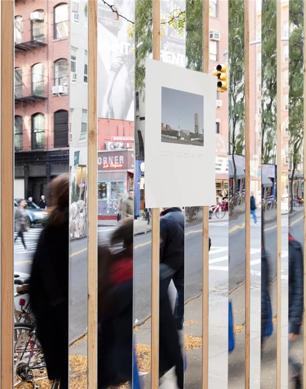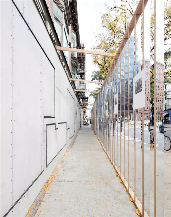 摄影师Naho Kubota记录了施工围栏在整个城市中的蔓延过程。纵观此次展览,施工围栏不再是以往的绿色胶合板,相反,整个新墙由镜面相互栓接。这一临时的“店面”以独特的方式丰富了画廊空间与街道的联系。