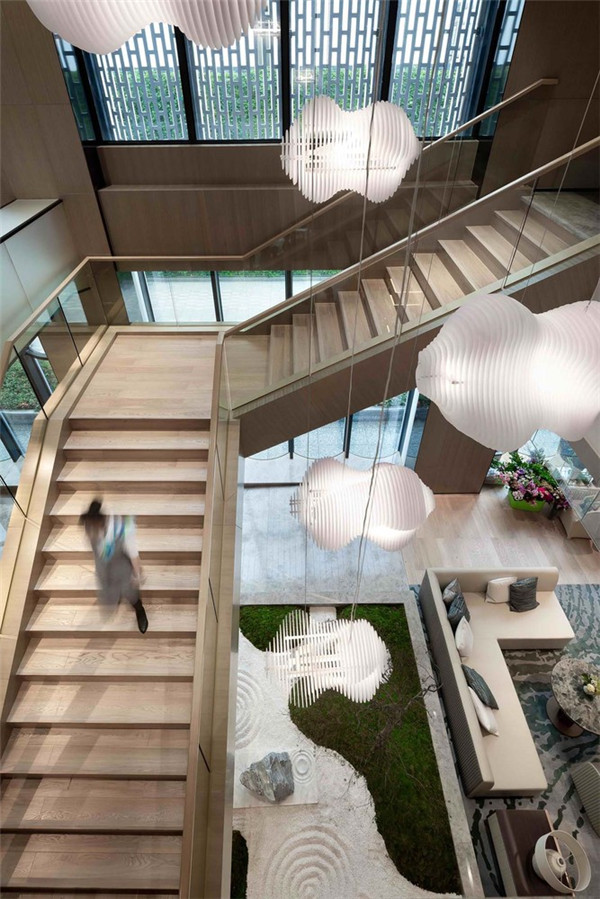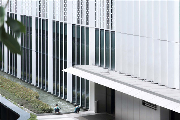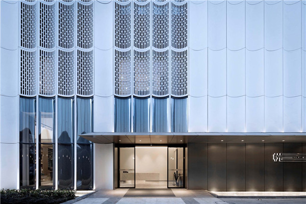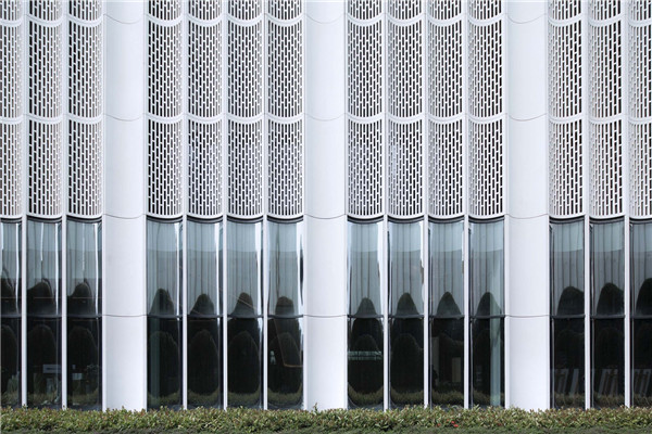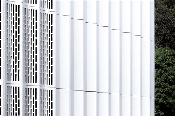 二层以上,建筑师以UHPC镂空板作为二次立面,为室内空间望向罐体的视线增添一层触媒,令观看的动作更丰富且更具生趣。