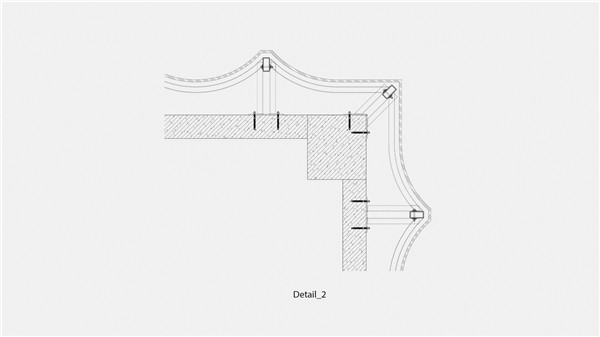 起初现场踏勘时,原始建筑的弧形玻璃幕墙使反射于其上的发酵罐罐体扭曲形变,这引起了建筑师的浓厚兴趣。于是,新立面的设计中建筑师们承袭了弧形语言,用内凹的弧形界面对应突出的罐体,形塑建筑的边界形态。