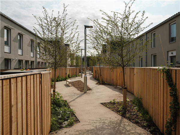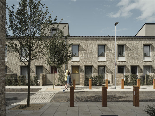 停车场设施被设置在周边,因此街道给人感觉安全,并且是由行人而不是汽车“占有”。花园经过精心设计,在公共人行道和大门之间形成缓冲区,为公共区域和私人区域提供了人性化的层次感。