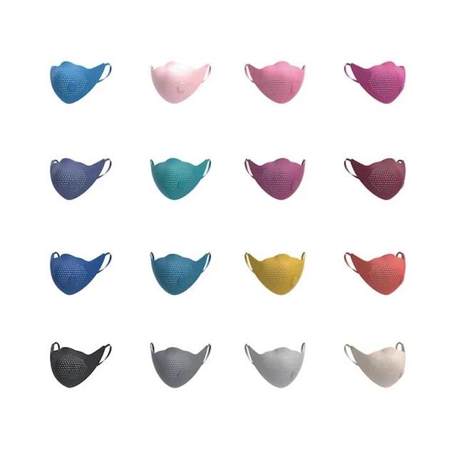 口罩可提供3种大小、14种颜色。该设计可使花粉过敏者平安度过花粉季节。彩色面罩也成为时尚的一部分。