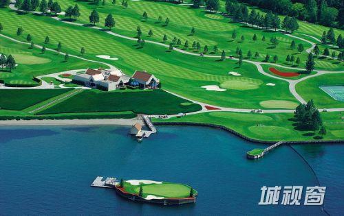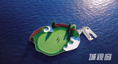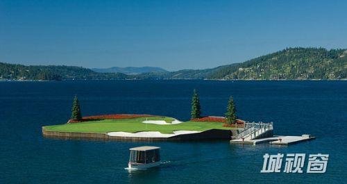 据英国《每日邮报》网站7月10日报道,美国爱达荷州日前建成了全球首个水上高尔夫球场。这个位于科达伦湖面上的高尔夫球场目前是全球唯一可漂浮、可移动的高尔夫俱乐部。球迷们必须坐船才能登上这座“水上绿岛”,打完一杆后也须移动球场位置才能继续下一杆。据悉,该水上球场是由电脑控制,通过水下电缆网络将命令传达至指定的设备。