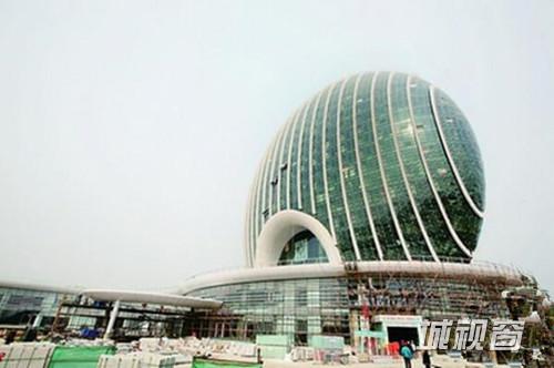 从侧面看,酒店建筑看上去是一个“扇贝”的形状,扇贝在中国文化里代表了“财富”,配合酒店建筑正面的圆形“旭日东升”的寓意,整个代表着中国经济和国力的蓬勃发展。