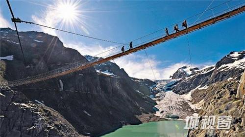 要想到达这座足足有170米高的特里夫特悬索桥,得搭乘特里夫特冰山的垂直缆车。它是全球变暖环境下的产物——原本冰川顶部的登山小屋可以步行到达,但是,在冰川开始收缩后,这座桥成了进入的唯一途径。这座悬索桥采用了传统尼泊尔绳索桥的建造模式,是阿尔卑斯山中最长也是最高的悬索桥。