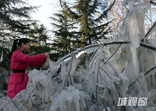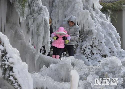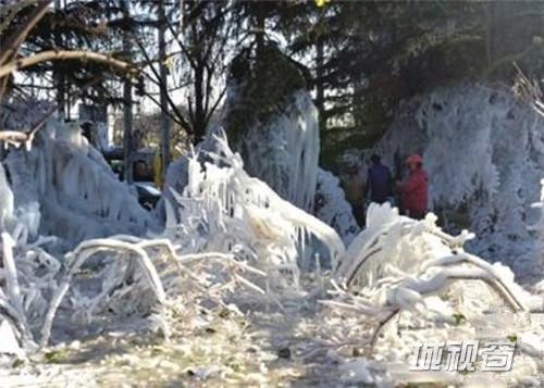 一位专程带着女儿前来游玩的女士告诉记者,据说是绿化带内管线发生了爆裂,“昨晚气温低,水喷出来,形成这么漂亮的景观。可惜是个意外,以后是不是可以人工弄一些,美化冬天的北京。”