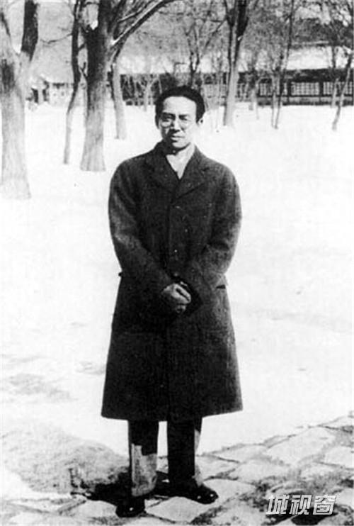 1933年,梁思成在中央公园营造学社办公室前。
